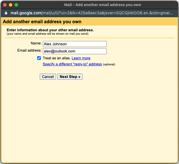 - Under the ‘Send mail as:’ heading, select ‘Add another email address.’