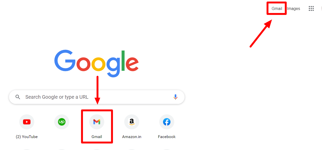 Navigate to Gmail to get to your Gmail account. If Google is your homepage, you can simply open a new tab and find the shortcut in the top-right corner.