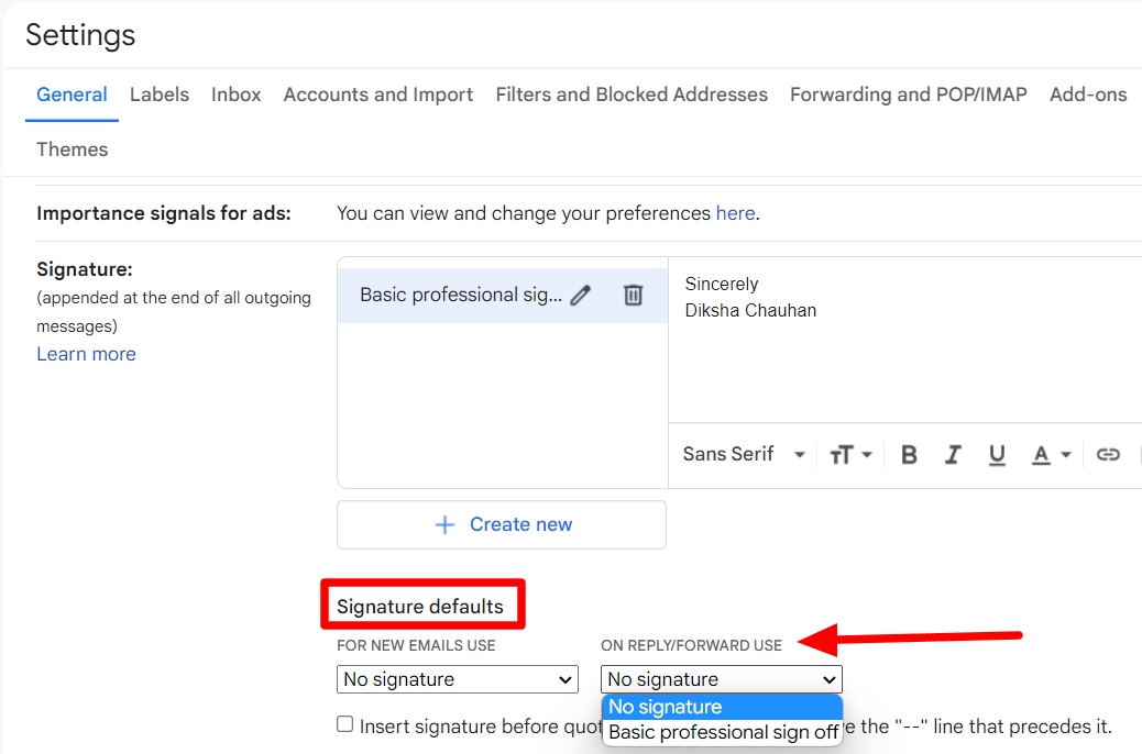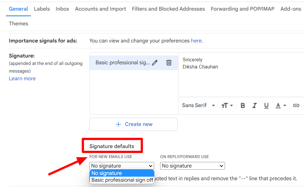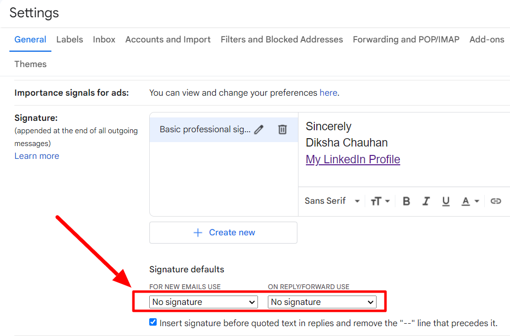Step 5: Change your Gmail signature defaults