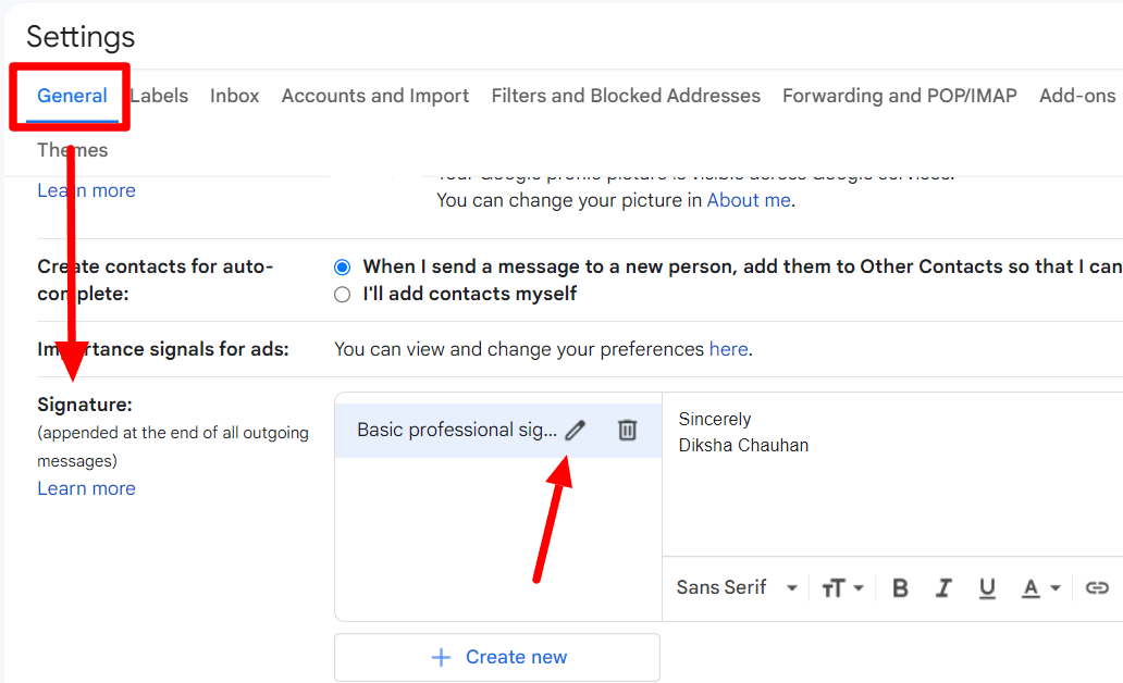 Step 4a: Edit your existing Gmail signature