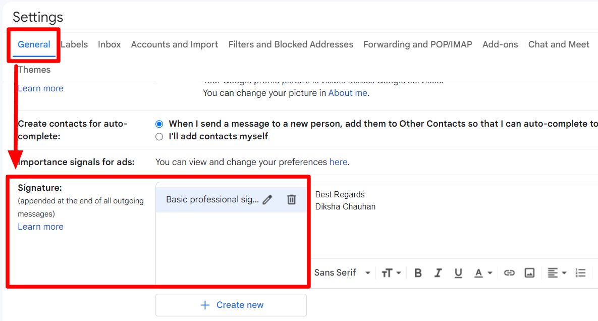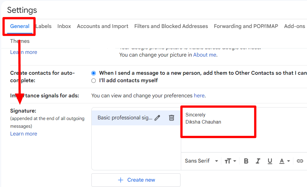 Step 3: Go to “Signature” under General tab